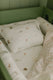 Disponível para berço e cama de solteiro, o jogo acompanha 1 lençol de baixo com elástico e 1 fronha com o mesmo detalhe delicado.