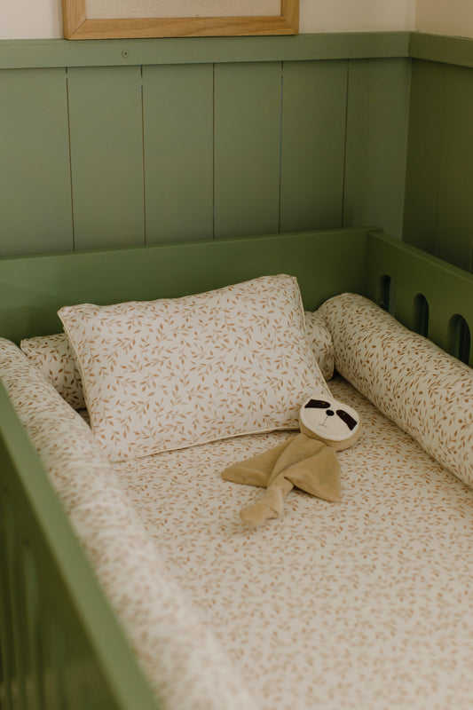 JOGO DE LENÇOL BERÇO EM MALHA - FOLHAS