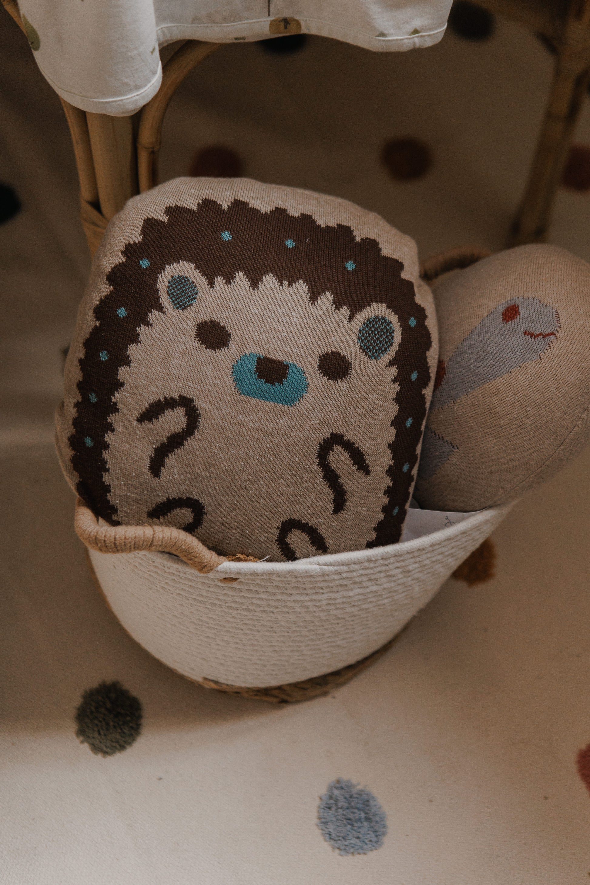 Nosso personagem Ouriço ganhou vida na almofada em tricot. Com design exclusivo Fio a Fio, ela é macia e lúdica