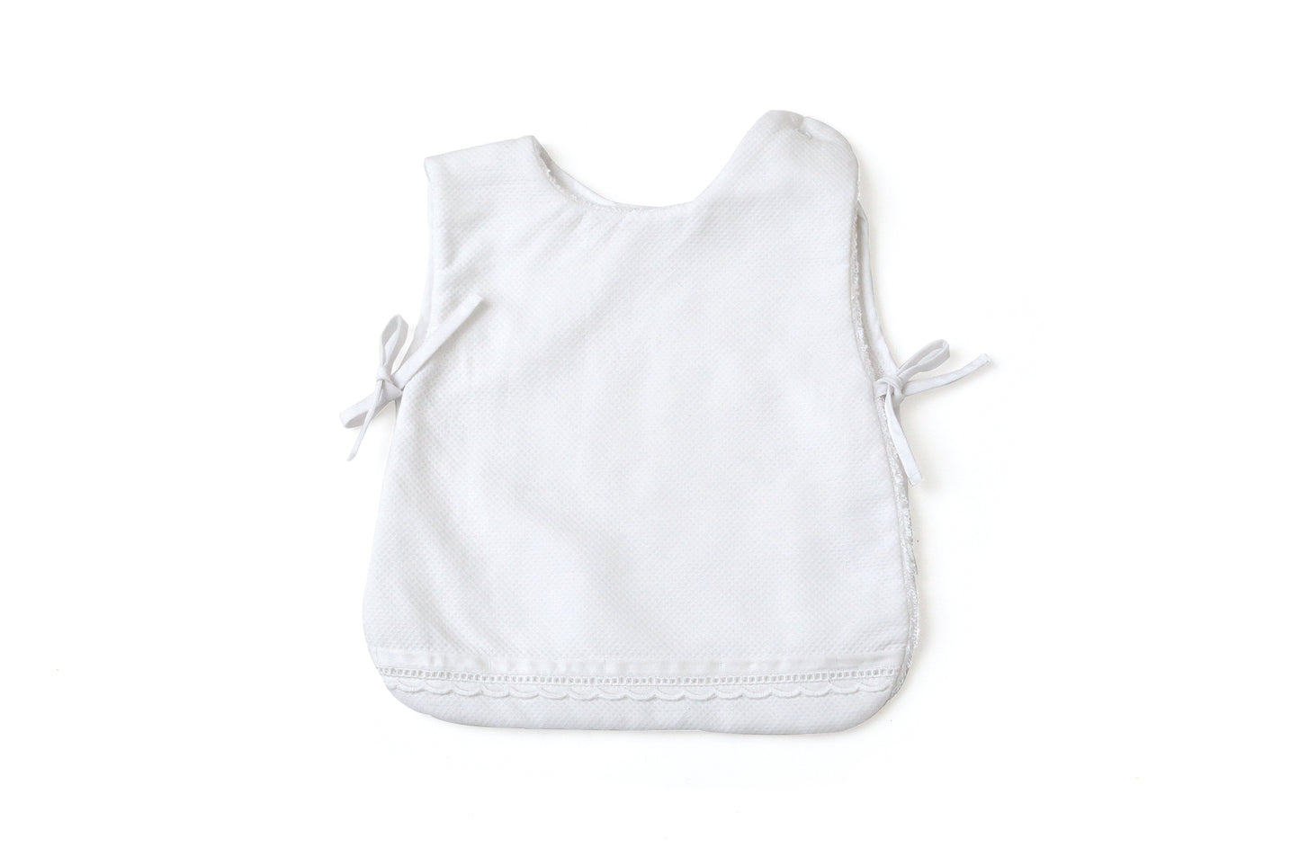 Delicado e funcional, o Babador Colete da Coleção Bordada foi pensado para acompanhar o bebê durante a introdução alimentar e as refeições do dia a dia.