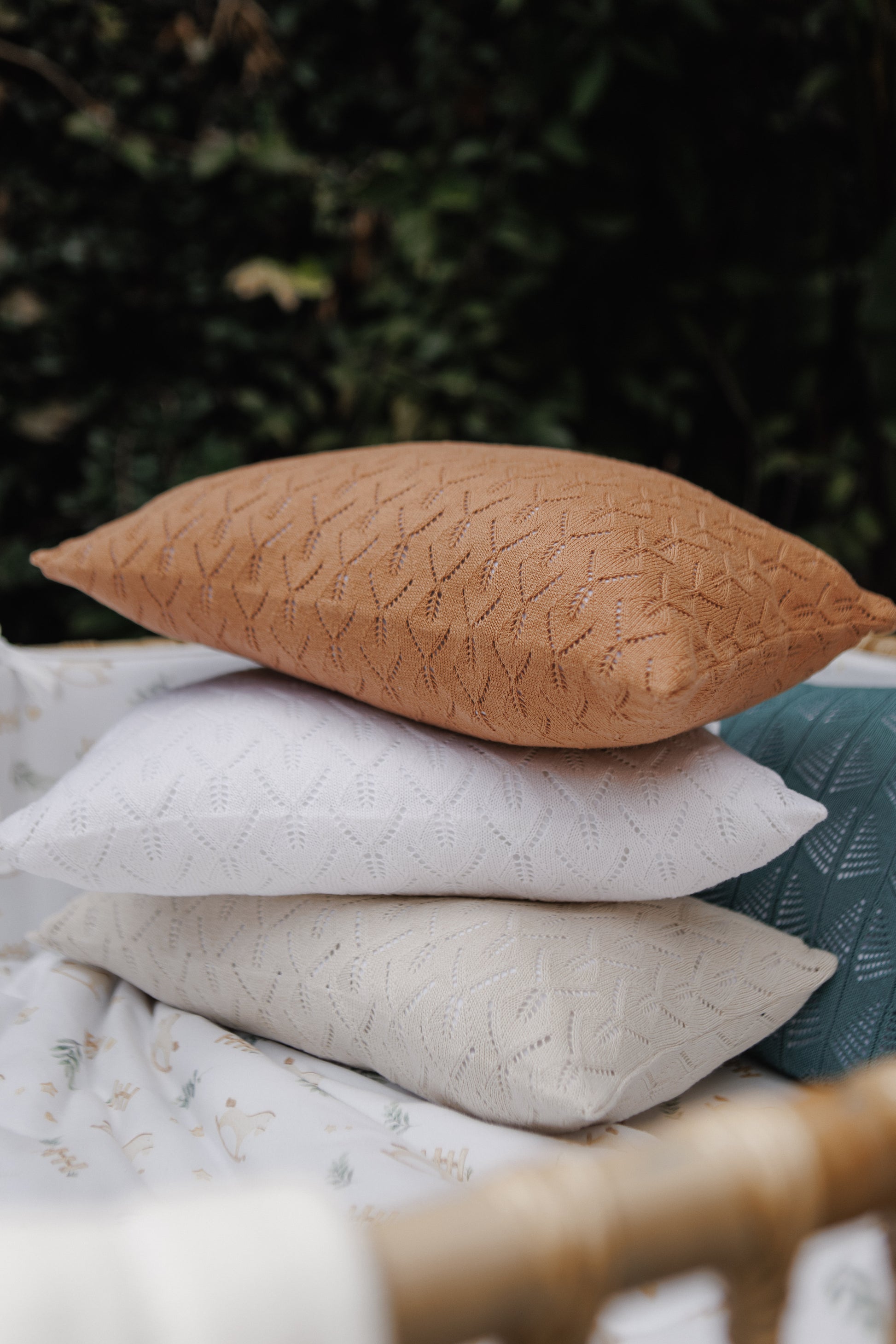 A Capa de Almofada Tricot Bamboo da Fio a Fio é um detalhe elegante e aconchegante para compor a decoração do quartinho.