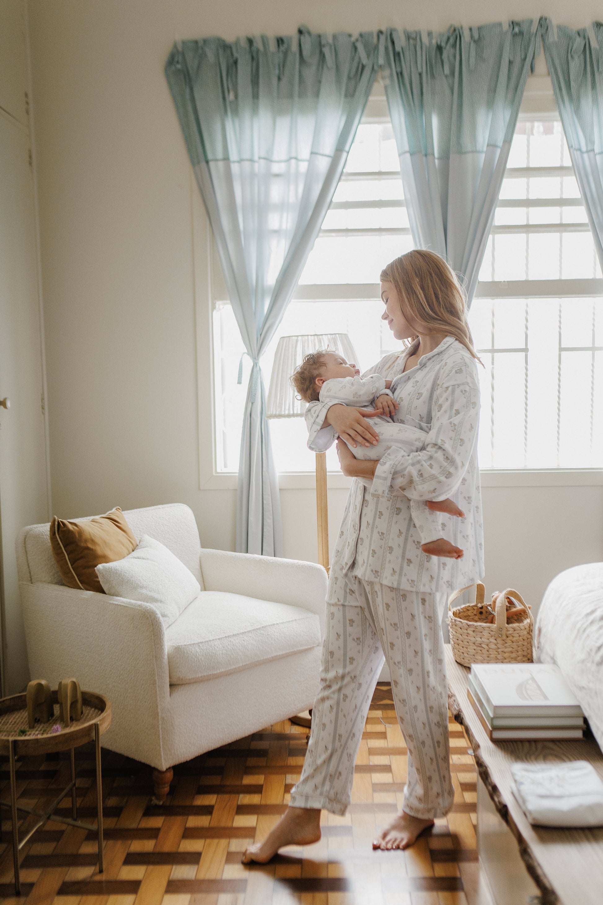 Da coleção Nina Materna by Fio a Fio, o pijama Ursinho traz a leveza dos primeiros dias em casa com uma estampa lúdica e exclusiva que acolhe mãe e bebê especialmente nos primeiros meses.