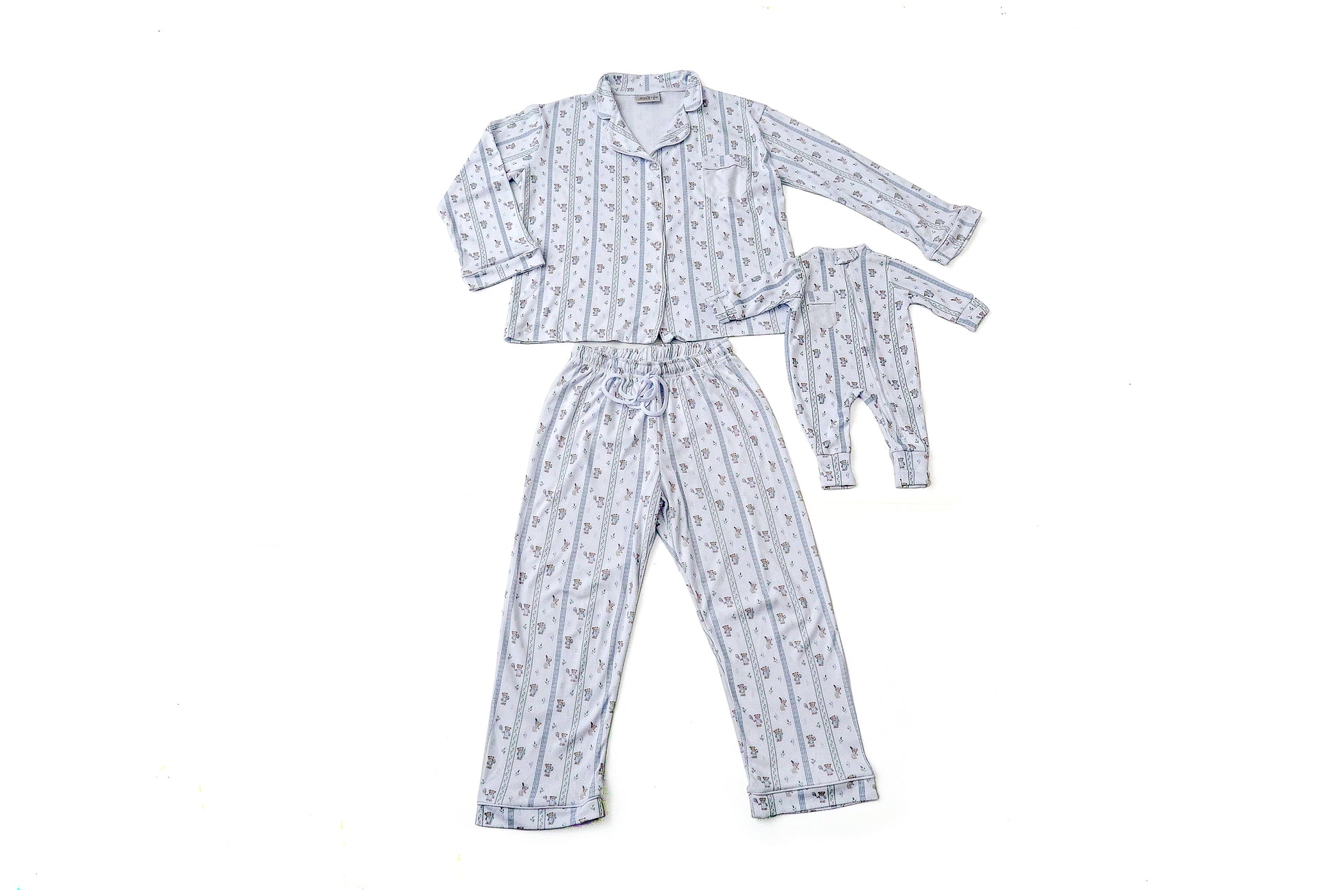 Feito em suedine 100% algodão, que garante toque extra macio, é inteiramente estampado com ursinhos delicados tanto no conjunto adulto, quanto no infantil. O acabamento em cordonê branco garante um toque de sofisticação.