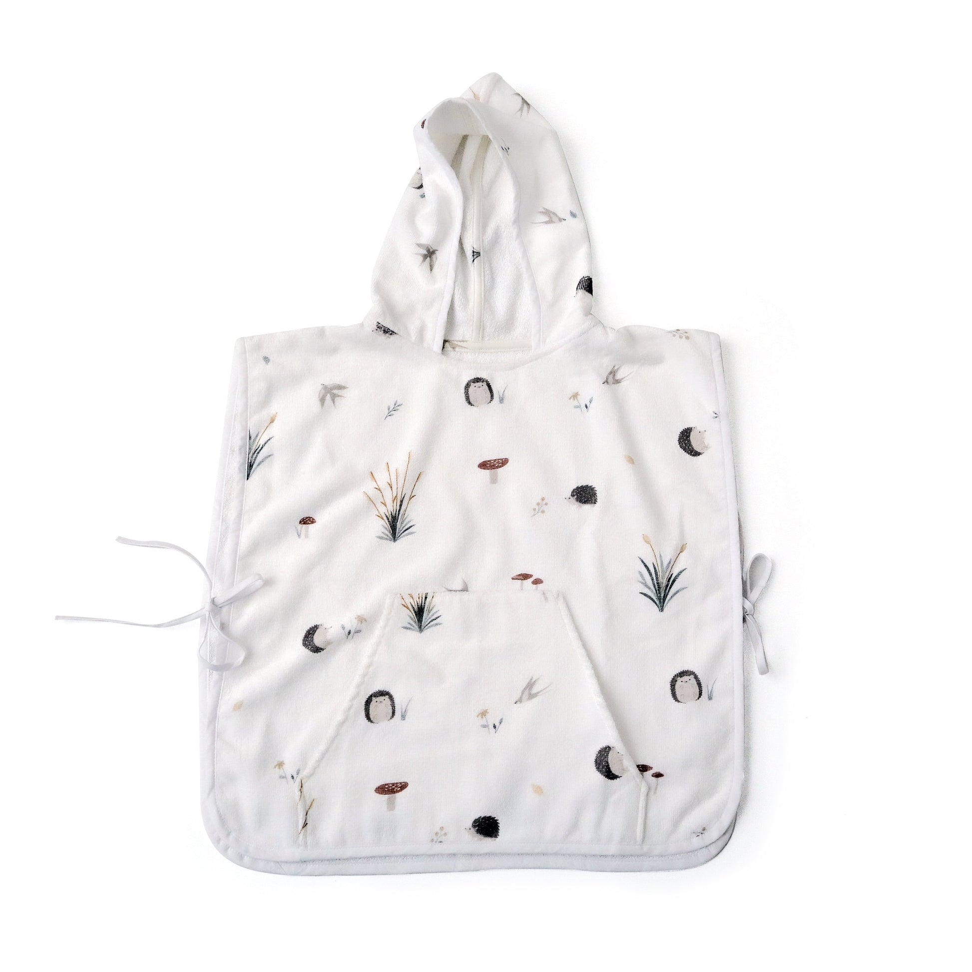 O Poncho atoalhado Ouriço tem uma estampa exclusiva com ouriços, plantinhas e cogumelos. A escolha perfeita para dias de praia, piscina ou pós banho. Feito com tecido atoalhado de alta absorção, ele proporciona total liberdade de movimento, garantindo conforto e praticidade para os pequenos.