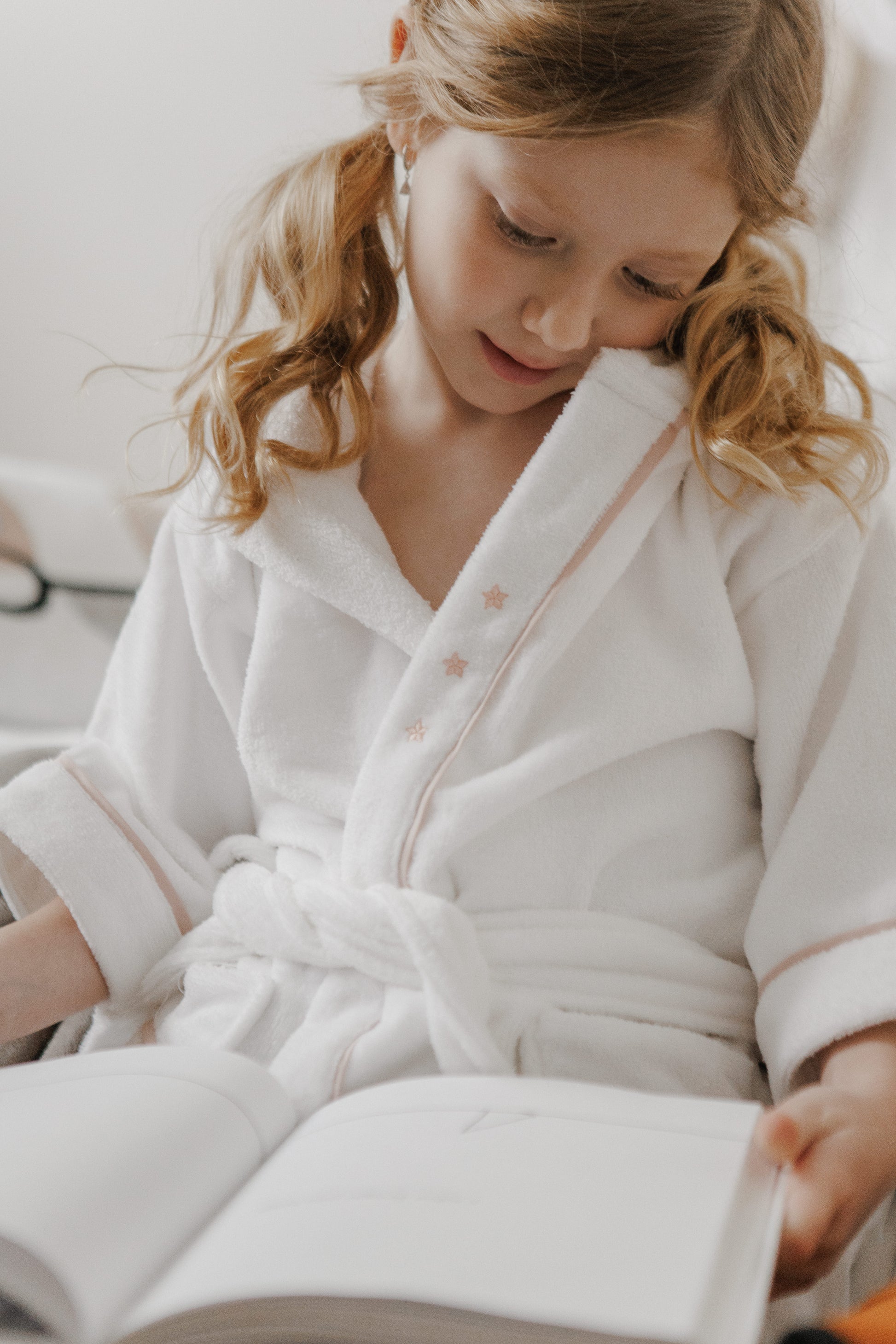 Com toque macio e caimento impecável, o roupão da Coleção Star é perfeito para depois do banho ou para os dias de lazer em casa. O capuz protege contra o frio e o bordado de estrelinhas e detalhe em viés colorido encanta. Acompanha bolso frontal e cinto para amarração.